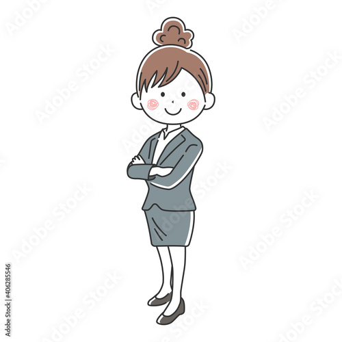 腕組みをする笑顔のビジネスウーマンのイラスト