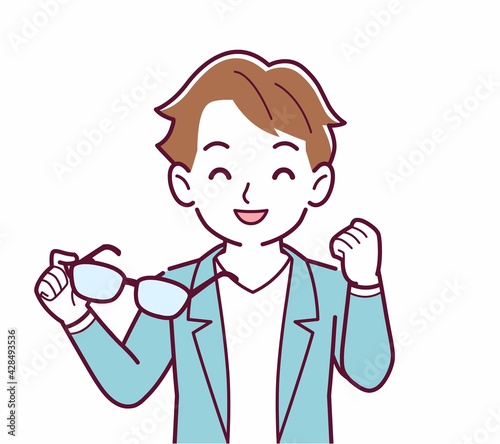 メガネを取った人