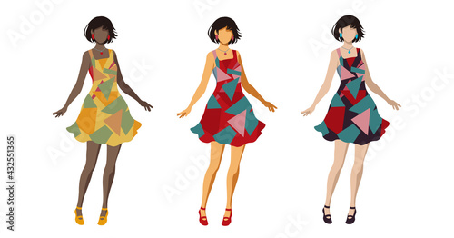 カラフルな夏服ワンピースの女性シルエットセット