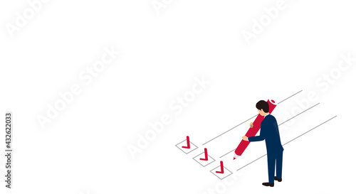 チェックイメージとペンを持つ男性のイラスト