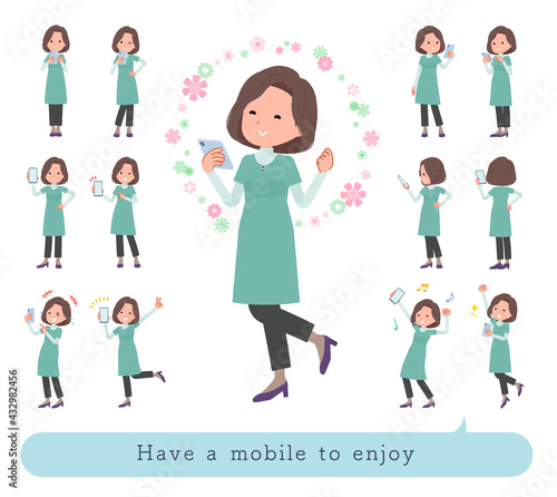 スマホを使って楽しむチュニック中年女性のセット