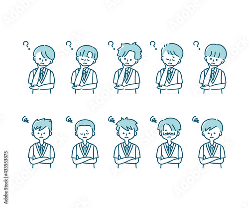 夏の制服を着た様々な男子学生の感情表現イラスト(上半身)