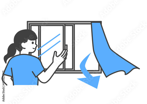 部屋の換気をするために窓を開ける女性のイラスト素材