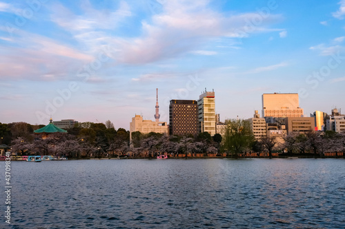 東京都台東区 春の上野公園 不忍池の夕暮れ