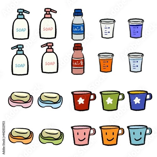 手洗いとうがいの小物セット(薬用泡ソープ・うがい薬・薬用石けん・コップ)