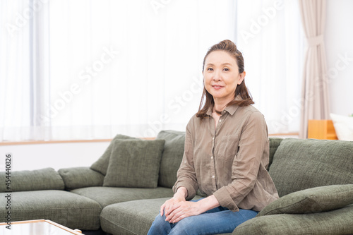部屋でリラックスするシニア女性