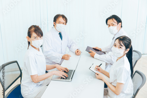 医療現場・カンファレンス(マスク・カメラ目線)