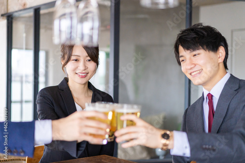 ビールで乾杯をするビジネスパーソン