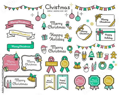 シンプルでかわいいクリスマスのフレームベクターイラスト素材/枠/リボン/文字あり