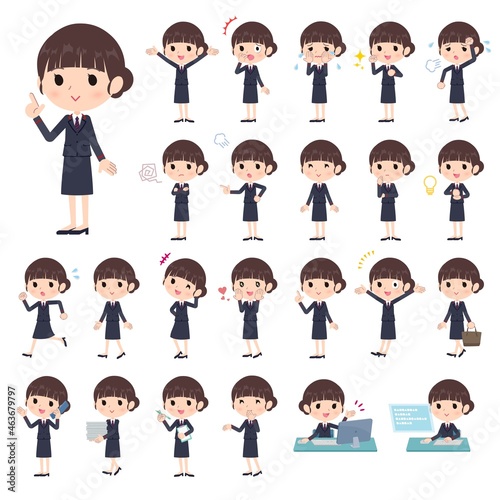 様々な感情表現をする郵便スーツ女性のセット