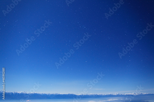 白馬岳と槍ヶ岳など北アルプスの山並みと星空, 上田市,長野県