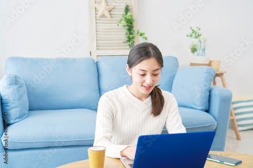 女性 パソコン リビング