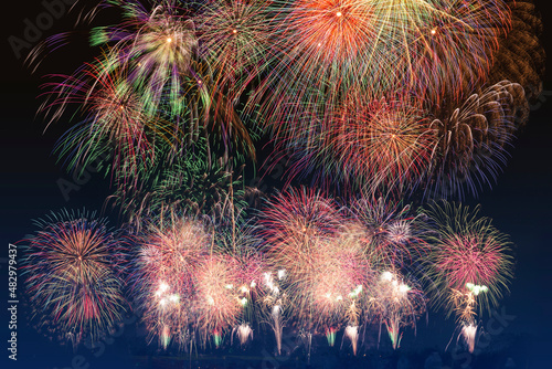 高く輝く花火大会 花火 夜空 花火イメージ 花火大会