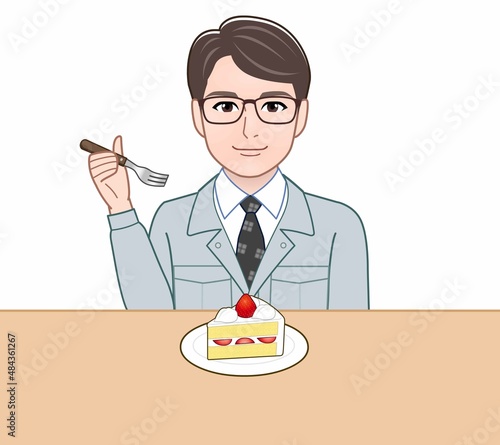 食事をする若い作業員の男性