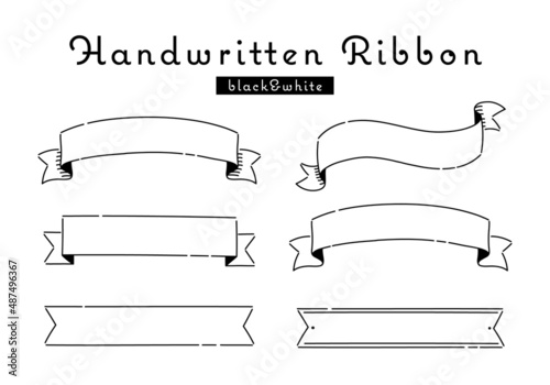 手書きのリボン ベクターイラストセット 飾り枠 線画