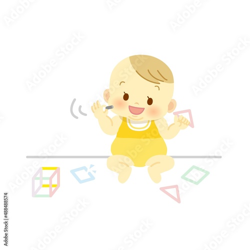 イラスト素材:マグネットパズルの破損で内蔵のネオジム磁石を幼児が誤飲する場面胃や腸に穴が開く事故