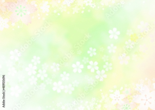 一面に花が咲く黄緑の背景イラスト