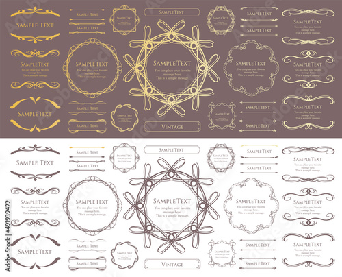 春の植物モチーフのフレームセット。ビンテージフラワー。装飾デザイン。流行りのあしらい