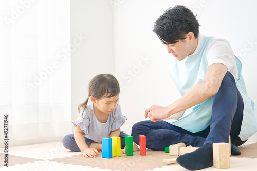 保育士と幼児 遊ぶ 室内