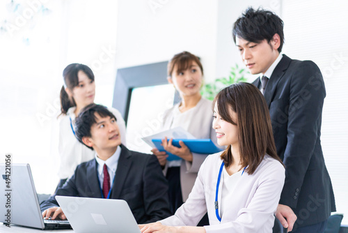 楽しくオフィスで働くビジネスパーソン