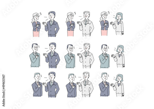 何気ない人の言葉で傷ついてしまった人々のセット コミカルな手書きの人物 ベクター、線画にカラー