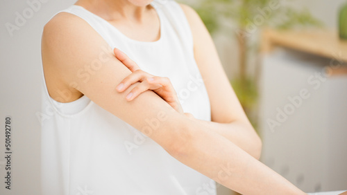 二の腕をマッサージする若い女性 ビューティーイメージ