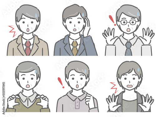 驚く中年男性の上半身セット