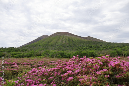 高千穂峰と鹿ヶ原のミヤマキリシマ
