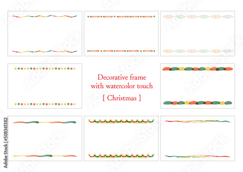 クリスマスカラーの水彩タッチ装飾フレームセット