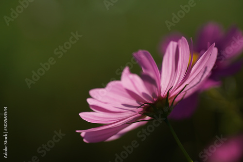 日差しにあたって透けるコスモスの花