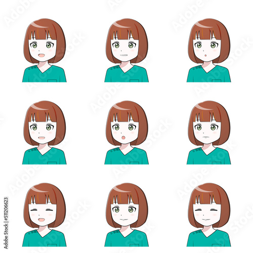「あ・い・う・え・お・ん」等いろんな口の形の女性看護師のイラストセット(アニメ・漫画タッチ)