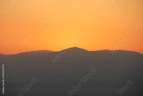 日没直後の、山のシルエット