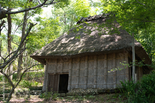 茅葺, 家, 古い, 建築, 木製の, 風景, 自然, 天井, 伝統の, いなか, 建造, 空, 緑