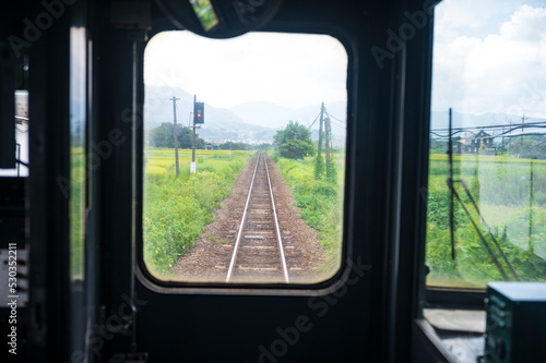 電車の車窓から見えるローカル鉄道の線路
