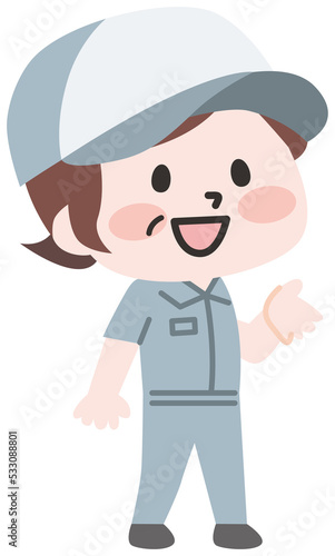 半袖の作業服を着たスタッフ