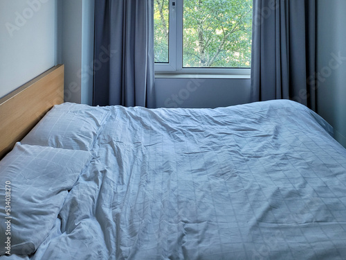창문 밖으로 녹색 숲이 보이는 침실 (숲뷰)