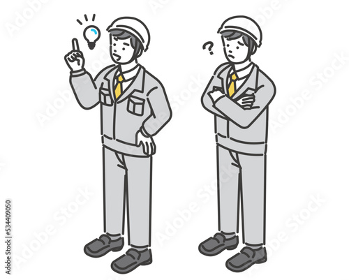 悩んだりひらめいたりする、作業員のベクターイラスト素材/アイソメ/サラリーマン