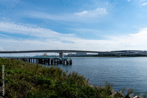 東京大田区羽田と神奈川県川崎を結ぶ多摩川スカイブリッジの風景