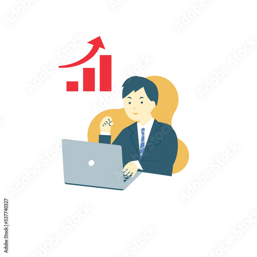 グラフが上がって嬉しいスーツの男性 /仕事/営業/事務