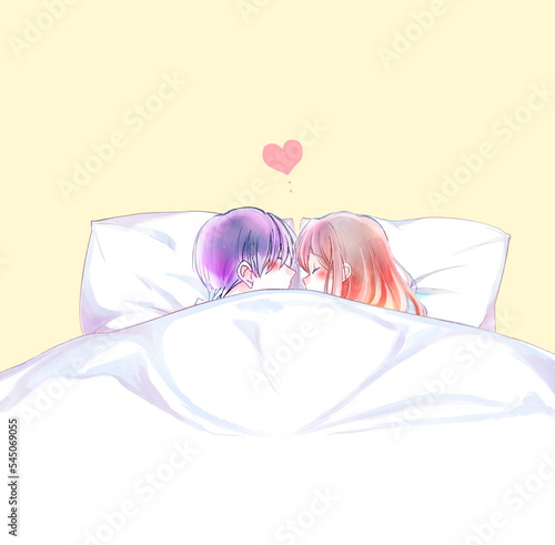 ベッドで向かい合う男女