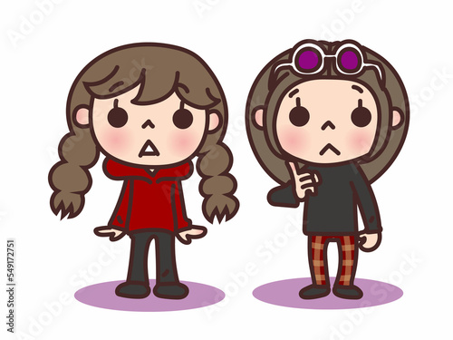 秋冬な服装の若い女性ふたりセット