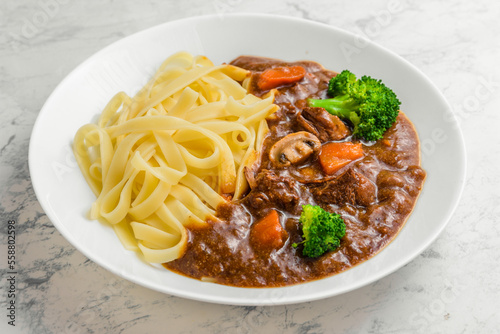 パスタのビーフシチュー