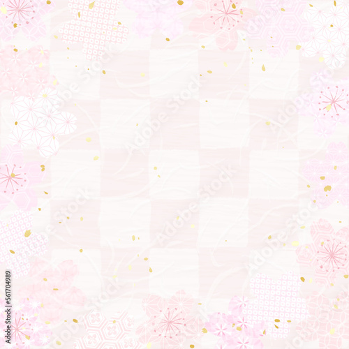 いろいろな模様の桜をあしらった和紙風背景イラスト