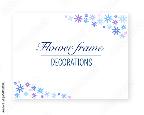 花のイラストフレーム_ブルー&パープル(斜め上下フレーム)