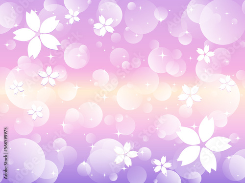桜の花と幻想的なパーティクル背景 横位置 パープル