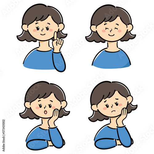 シンプルでかわいい女性アイコン 表情バリエーション イラスト素材セット