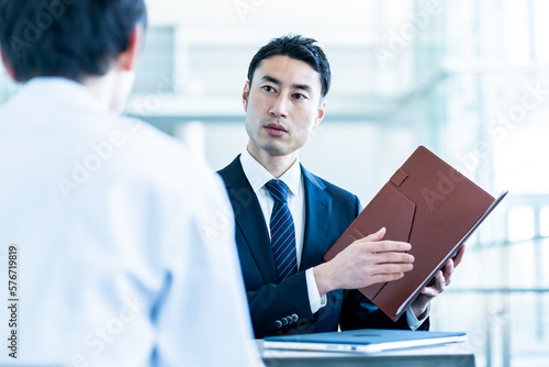 白衣を着た男性とスーツを着たビジネスマン