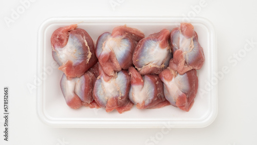 鶏肉・白いトレーと生の砂肝(砂ずり)