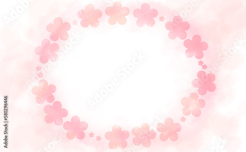 花柄の楕円フレーム・ピンク-ふんわり水彩画テクスチャ イラスト素材 色違い・差分有