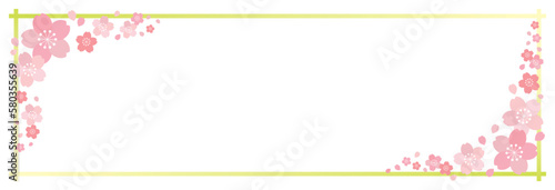 桜の花とグラデーションラインの四角フレーム 背景 バナー/横長・黄緑